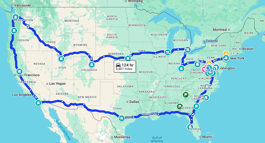 Here is a map of the general route that I will be taking. This is not an exact route as I will be trying to avoid interstate travel when possible. In addition, there’s still room to ask me to come your way!! No guarantee’s but I’ll try!